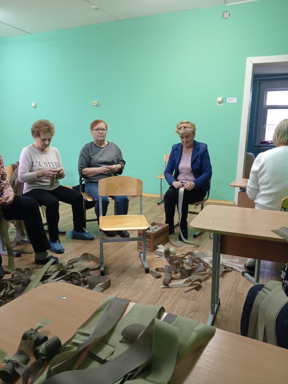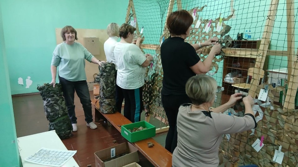 • Маскировочные сети: Под руководством активистов пенсионеры кропотливо плетут и крепят на сети лоскуты ткани, создавая эффективное средство маскировки для позиций и техники российских воинов.